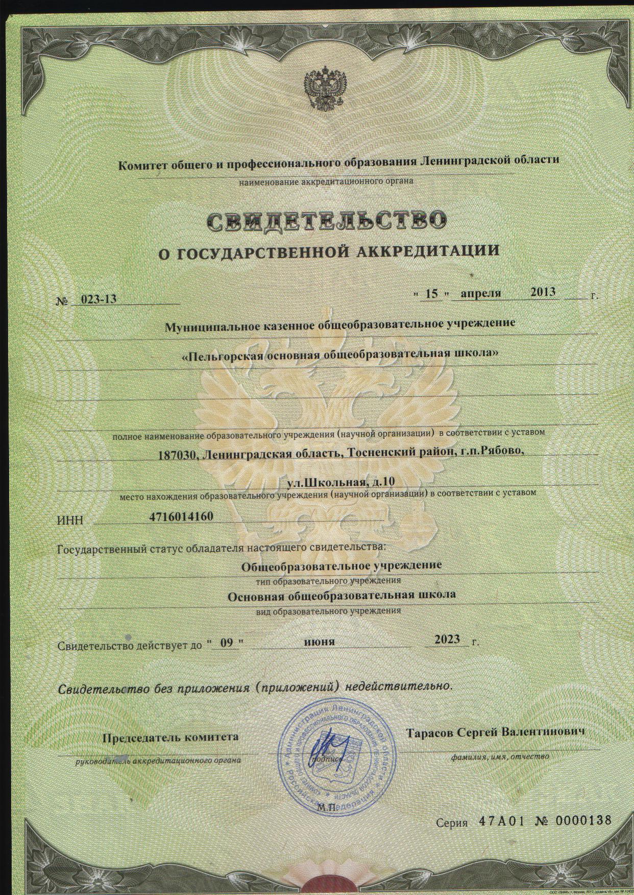 Председатель Комитета образования администрации муниципального образования Тосненский район Ленинградской области: Запорожская Валентина Михайловна.;