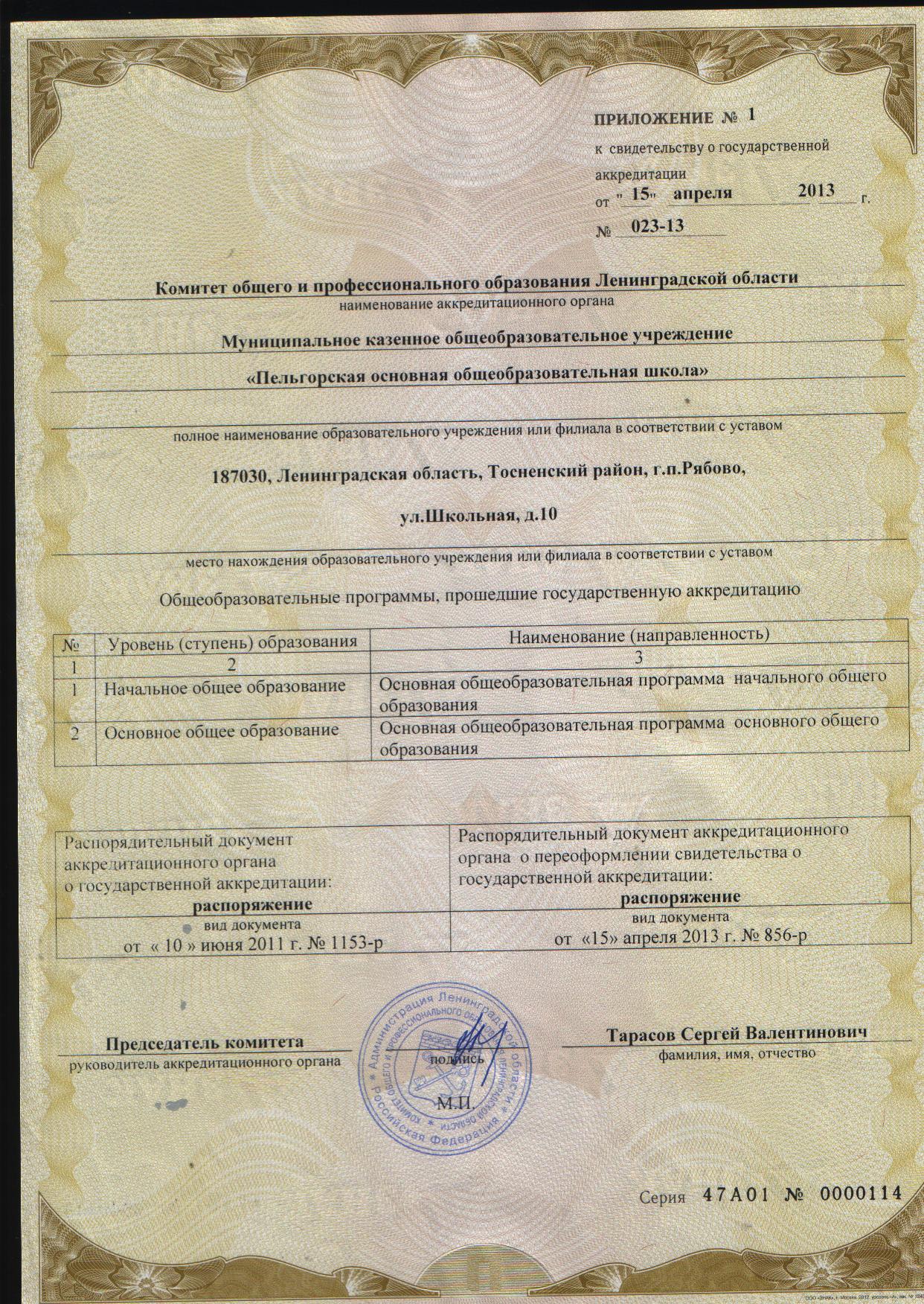В целях оптимизации сети образовательных учреждений Тосненского района в соответствии с постановлением администрации муниципального образования Тосненской район Ленинградской области от 20.12.2012 № 3467-па «Об изменении вида и переименовании муниципального казенного общеобразовательного учреждения «Рябовская средняя общеобразовательная школа» Учреждение переименовано в муниципальное казенное общеобразовательное учреждение «Пельгорская основная общеобразовательная школа».